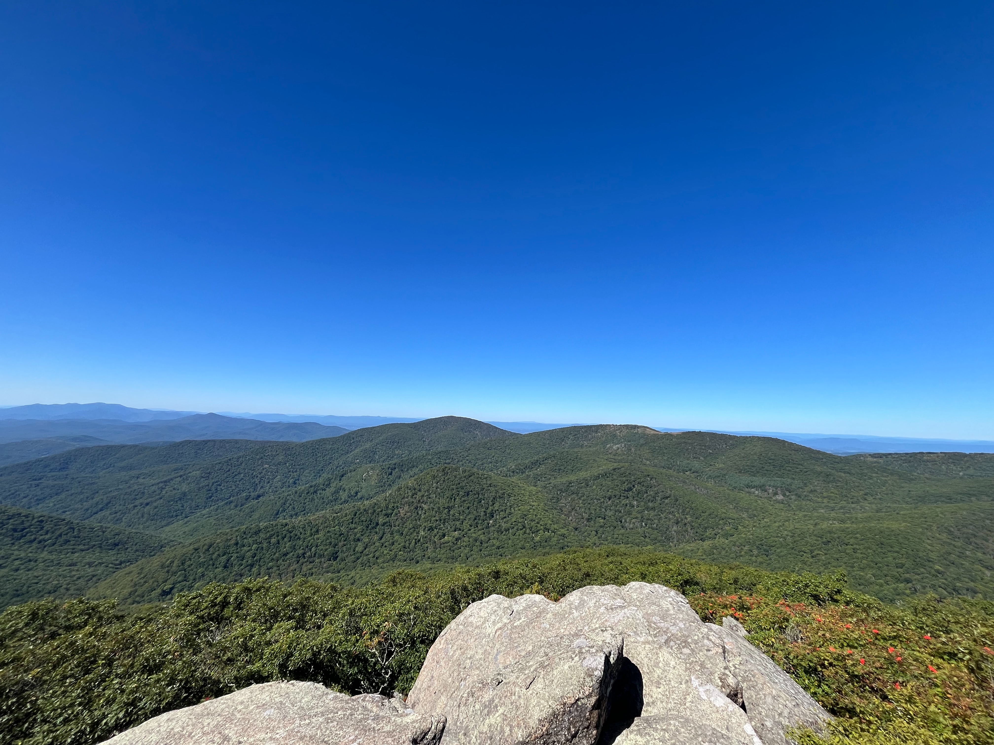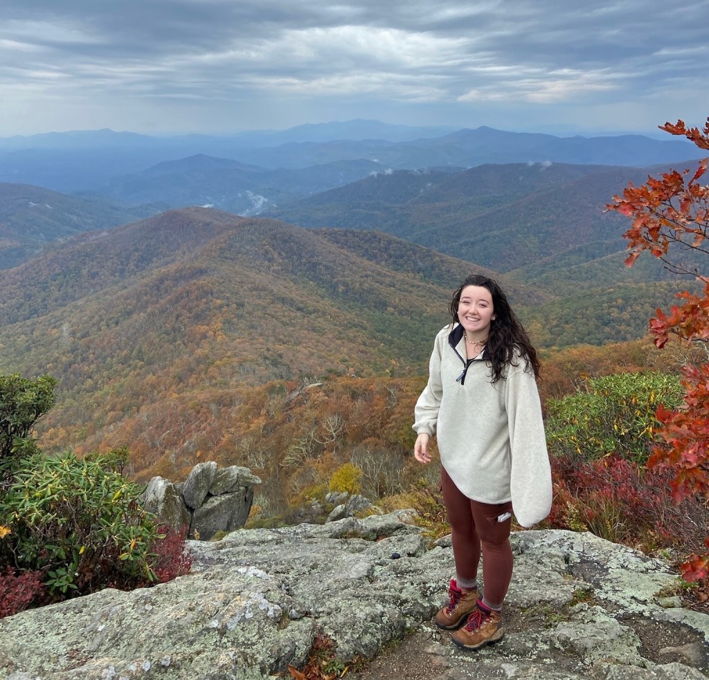 There is an East and a West overlook. Both have incredible panoramic views of the surrounding mountains. There is no brush or foliage blocking the views. It is the perfect spot for leaf peeping in the fall or watching the sunrise. For the best fall leaves, I suggest going in mid-October.