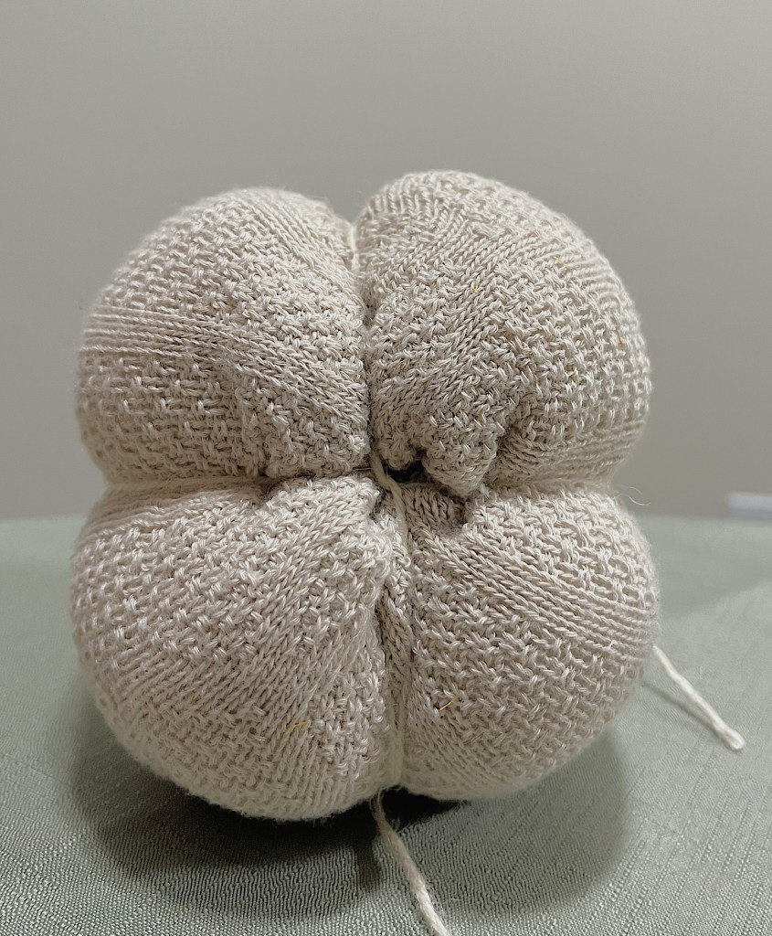- Stuff your sock with soft filling so it becomes a “pumpkin”.
