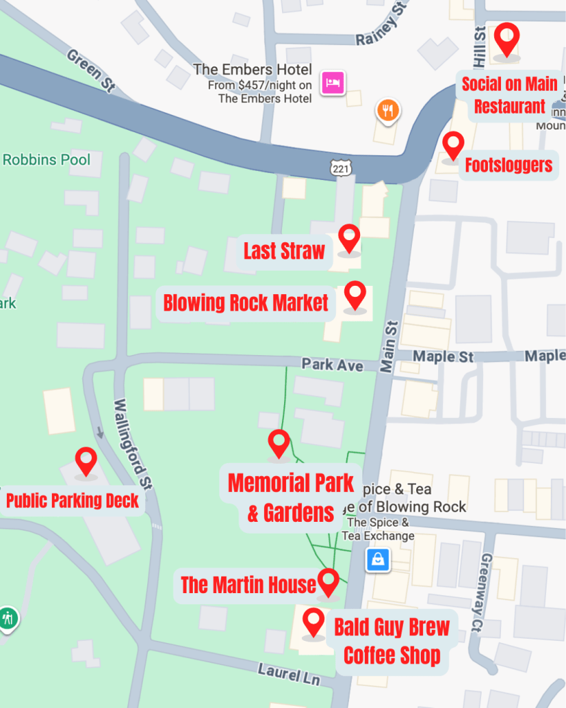 Like all mountain towns, parking can be tricky. There is a free public upper and lower parking deck near Memorial Park. If you are planning your trip on a Saturday during mid-October, parking will fill up quickly. Arrive early.